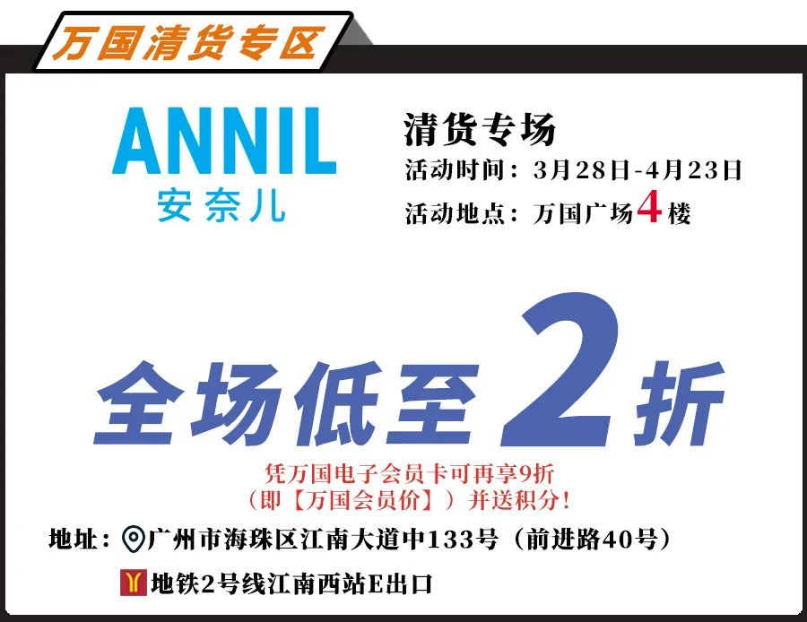 2025-04-20 最后3天 | 【清货专场】ANNIL安奈儿 全场低至2折(请往4楼)
